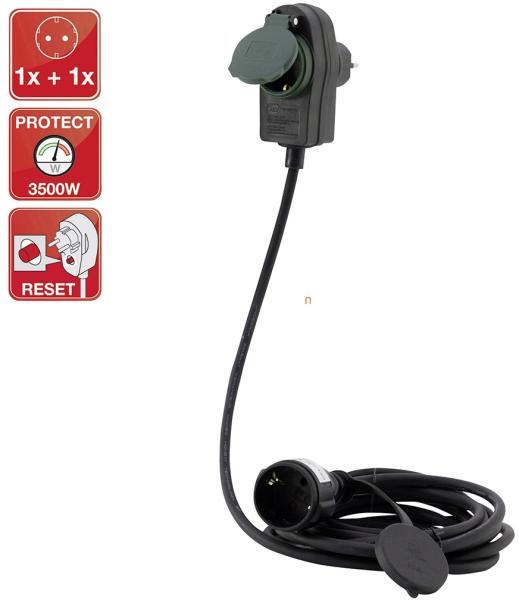 A GAO Powersplit 1+1 elosztó 3x1,5mm2 5m kábel 250V 16A IP20 0016150114 használata során a hosszabbító mellett, a hálózati csatlakozásnál továbbra is elérhető marad egy dugalj. Ennek köszönhetően nem kell lemondani a fali csatlakozásról sem, miközben akár 10 m távolságban is biztosítható áramforrás. A max. 3500 W összteljesítmény átlépése esetén a biztonságról h