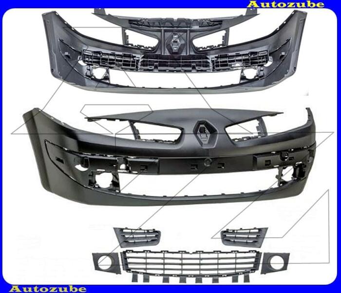RENAULT MEGANE 2 2006.01-2008.10 Első lökhárító alapozott, 5db ráccsal (ködlámpás is)Utángyártott alkatrész