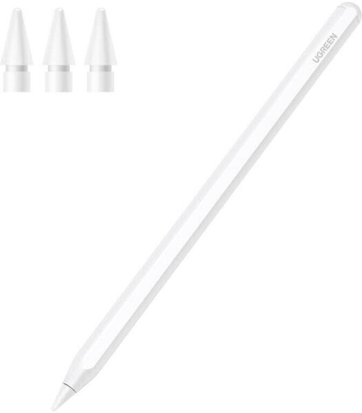 UGREEN LP653 Smart Stylus érintőceruza Apple iPadhez (fehér) Elegáns és modern eszköz az iPad felhasználók számára, amely egyesíti az eleganciát és a fejlett technológiát. Fehér kialakítása, könnyű szerkezete (113 g) és fejlett funkciói, mint a vezeték nélküli mágneses töltés, hosszú akkumulátor-élettartam Bluetoothszal, dőlésérzékenység, Palm Rejection támogat