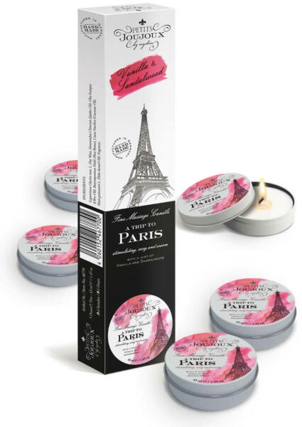 Romantikus este, Párizs hangulatát idéző érzéki vanília és szantálfa illattal megfűszerezve! Kellemesen érzéki illattal készülő, 5 részes gyertya szett , mely a kanóc meggyújtását követően masszázsolajjá változik. Tápláló, hidratáló összetevőkkel, olajokkal: shea vaj, jojoba olaj, oliva. Dekoratív, ajándéknak is tökéletes színes grafikával ellátott dobozban.
