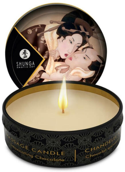 Masszázs és illatosító gyertya egyben, amely 100% természetes olajokból készült és kézmeleg olajjá válik érintés hatására. A szójabab alapú gyertya nem tartalmaz paraffint, nem hagy foltot, biztonságos. A termék kókusz és mandula olajat is tartalmaz. Akár 40 órán át ég. Mámorító csokoládé illatú.