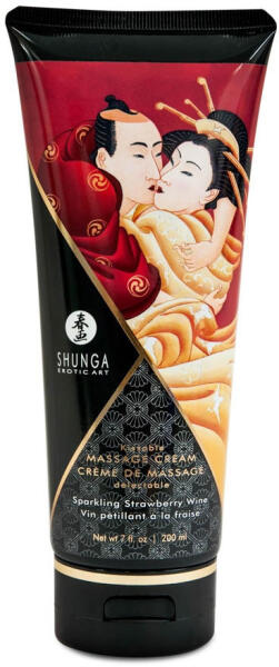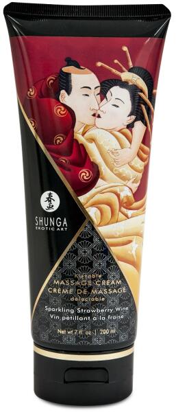 Sparkling Strawberry Wine cream-200ml. Ehető masszázskrém-eper/bor ízű. Kiváló masszázs krém a kiváló SHUNGA-tól! Nem hagy foltot. Nem zárja el a bőr pórusait. Nem tartalmaz ásványi anyagokat és állati olajt. Ideális egy nyugtató masszázshoz vegyítve érzéki simogatással, mindkét fél számára. Ez a 100% természetes olajokból álló, mámorítóan illatos masszázskré