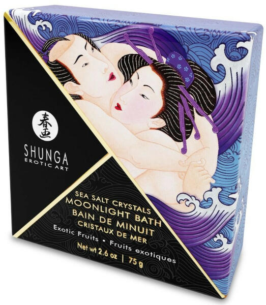 Éld át a Shunga egotikus lila fürdősók varázsát! Ezek a 75 gr-os keleti kristályok afrodiziákumokkal teli lila tóvá változtatják a fürdővizet, így teremtve meg az intim pillanatok tökéletes színterét. Merüljön el a tenger serkentő hatásaiban és élvezze a "tavaszi kép" érzékiségét! Shunga exotikus lila fürdősó - 75 gr A Shunga egzotikus lila fürdősó egy 75 gramm