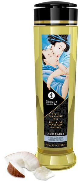 Élvezze az érzéki erotikus masszázsok örömét ezzzel a többek között hidegen sajtolt mandulaolajból, szőlőolajból, E-vitaminból, illóolajból, napraforgóolajból készített exkluzív keverékkel, kókusz illattal. Ezeket az olajokat gondosan választották ki stimuláló és energizáló tulajdonságaik miatt.