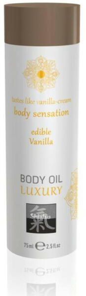 Édes vanília ízzel és illattal készülő luxus masszázsolaj, egyenesen a HOT Shiatsu-tól! DISZKRÉCIÓ! Ne aggódj, minden erotikus termékünket diszkrét csomagolásban küldjük ki! Shiatsu Luxury ehető masszázsolaj vanília (75 ml) Tulajdonságok: -ehető, luxus minőség -ínycsiklandó vanília íz és illat -nagy kenőképesség kis mennyiség mellett is -orál szexhez és testmass