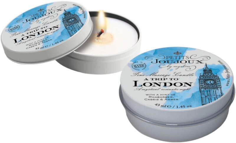 Érzéki illattal készülő gyertya, mely a kanóc meggyújtását követően masszázsolajjá változik. Dekoratív, ajándéknak is tökéletes, színes grafikával ellátott, kis fém dobozban. Használat: Egyszerűen gyújtsd meg a gyertyát, várj egy kicsit, amíg a gyertya bódító ámbra és egzotikus rebarbara illatú, masszázsolajjá változik és így már kedvedre cirógathatod vele
