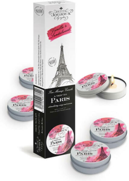 Romantikus este, Párizs hangulatát idéző érzéki vanília és szantálfa illattal megfűszerezve! Kellemesen érzéki illattal készülő, 5 részes gyertya szett , mely a kanóc meggyújtását követően masszázsolajjá változik. Tápláló, hidratáló összetevőkkel, olajokkal: shea vaj, jojoba olaj, oliva. Dekoratív, ajándéknak is tökéletes színes grafikával ellátott dobozban.