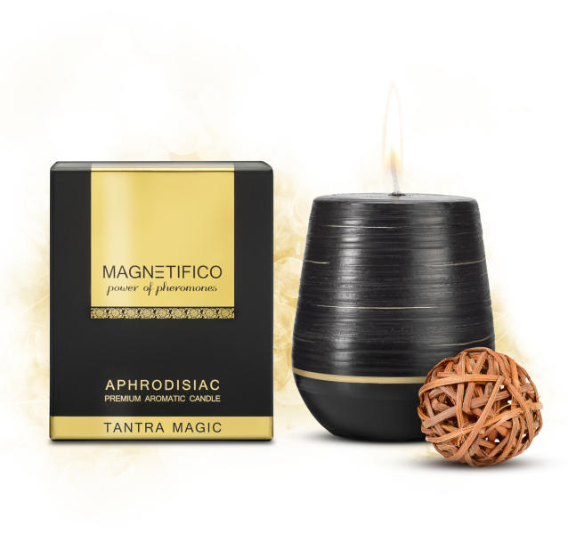 Egyedülálló afrodiziákum illatú gyertya a Magnetifico termékcsaládból - a feromonok ereje nemi vágyat fokozó, egyedi, meghitt és csábító atmoszférát teremt. Különleges egészségbarát technológia. Kézzel készített. Luxus dizájn.