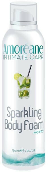 Amoréane Sparkling Bodyfoam masszázshab, mojito aromával (150 ml) Különleges, hidatáló hatású masszázshab, mely a palackból hasonlóan távozik mint a borotvahab, bár annál könnyebb szerkezetű, felhasználáskor, pedig, amikor a bőrfelülettel érintkezik, bizsergető, kissé hűsítő hatású. (A bizsergés-pezsgés, egy nagyon kicsit hasonlít ahhoz a kristályos pezsgő cukork