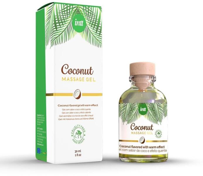 Glicerin alapú, melegítő hatású, kókuszdió illatú masszázsolaj. A felvitel után óvatosan meg kell fújni a bőrfelületet, hogy hatása érvényesüljön.