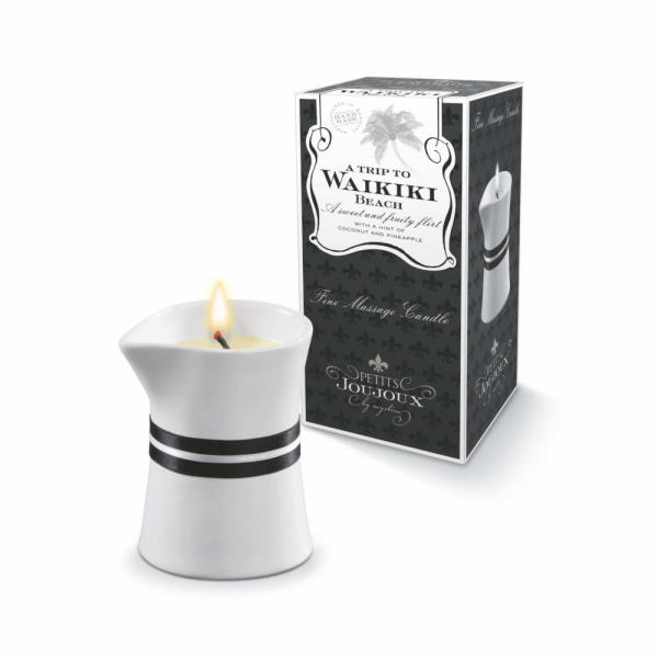 Masszázs és illatosító gyertya egyben, amely 100% természetes olajokból készült és kézmeleg olajjá válik érintés hatására. A szójabab alapú gyertya nem tartalmaz paraffint, nem hagy foltot, biztonságos. A termék kókusz és mandula olajat is tartalmaz. Akár 40 órán át ég. Egzotikus gyümölcs illatú.