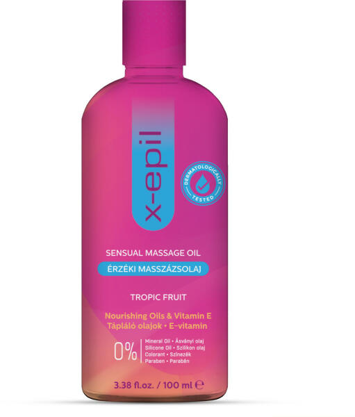 Miért jó? Relaxáló masszázsolaj testmasszázshoz, kifejezetten az intim zónákra Trópusi illattal - Kész illatorgia pezsdíti fel a vágyakat Élvezd a trópusi gyümölcs illatú X-Epil érzéki masszázsolaj által nyújtott meghitt és érzéki pillanatokat! Masszírozás közben ellazít és tökéletes élményt nyújt, vadító illata izgalmassá teszi a masszírozás nyújtotta rela