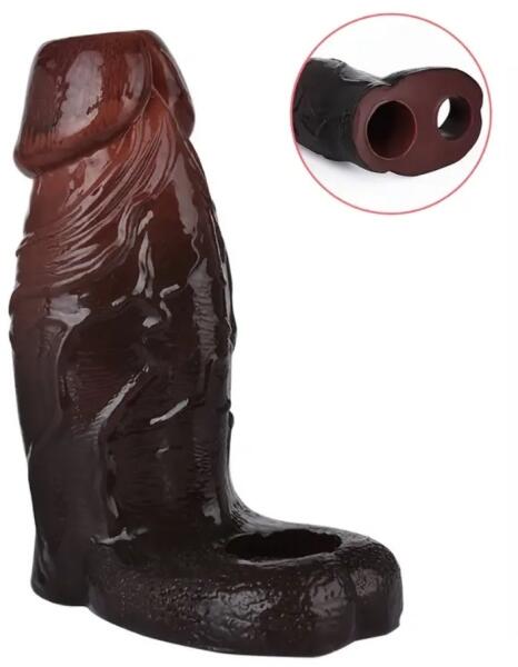 Mengkaure barna szilikon nyitott végű péniszfeltét. Folyékony orvosi szilikonból készült. Nagyon rugalmas. Extra tartós. Herére akasztható. A makk kint van-így érzed a szexet jobban. Külső átmérő(alap helyzetben):kb5cm. Belső átmérő(kb. 3cm) rugalmas anyag. Hossza:13cm-ez ami rámegy a péniszre. Kb. 2-2,5cm-t vastagít.