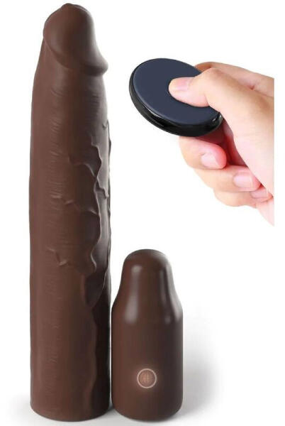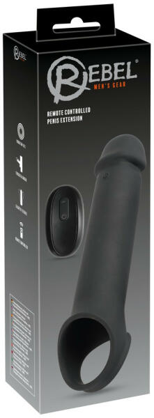 Rebel - akkus, rádiós vibrációs péniszköpeny (fekete) 8cm-rel hosszabb, vibráló férfiasság! Bizsergető rezgéssel felszerelt, bőrbarát, vastagító és erősen hosszabbító hatású péniszköpeny, biztonságos, heregyűrűs kialakítással, hogy nagyobb, kitöltőbb élményt nyújthass kedvesednek, mindkettőtök örömére! EXTRA: a végében erős rezgő motor kapott helyet, mely