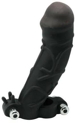 | 14990 | A pénisz egészét befedő, óvszerhez hasonló módon felhelyezhető, erezett felületű, 2 behelyezhető vibrátorral ellátott, erotikus kiegészítő heregyűrűvel. Külső kialakítása a partner számára izgató hatású. Anyaga vastagsága az ingerek érzékelését csökkenti, így teszi lehetővé az aktus idejének meghosszabbítását. Tisztítása : minden használat előt