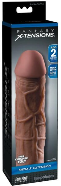 X-TENSION Mega 2 - élethű péniszköpeny (20,3cm) - natúr Élethű anyagú péniszfeltét, mely fájdalommentesen növeli a pénisz méretét! 66%-kal markánsabb átmérő és 5,1m-re hosszabb hímtag! Miért jó? Valódi érzést nyújtó, tökéletesen élethű anyag és forma Rendkívül lágy, selymes tapintású, a valódi bőrre emlékeztető Nagyon rugalmas - tökéletesen idomul szinte