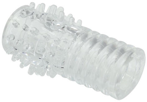 Termék részletekA pénisz vagy vibrátor egészét befedő, óvszerhez hasonló módon felhelyezhető erotikus kiegészítő. Külső kialakítása a partner számára izgató hatású. Anyaga vastagsága az ingerek érzékelését csökkenti, így teszi lehetővé az aktus idejének meghosszabbítását. Tisztítása : minden használat előtt és minden használat után langyos szappanos vízzel és segédeszk