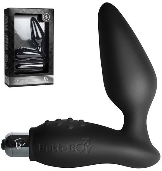 BUTT-BOY SLIM INTENSE 10func. Akkus-USB töltő a csomagban. A prosztata kényeztetés maximálisan kitöltő mestere, egyenesen a Rocks Off-tól!! Teljesen bőrbarát, allergénektől mentes szilikonból készült kényeztető, anatómiailag ideális, kifejezetten férfiak számára kifejlesztett, erősen hajlított formával, a prosztata könnyed és intenzív kényeztetésére. Kellemes, selyme