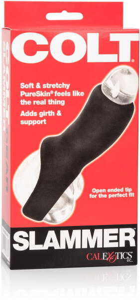 COLT Slammer. Végre egy péniszköpeny, melynek használata mindkét fél számára kellemes. Forradalmian új kialakításának köszönhetően többféle módon használható, de nem helyettesíti az óvszert. Az anyaga – TPE . . amely ellenállhatatlanul puha és őrülten rugalmas. Arra lett kifejlesztve, hogy kiváló kényelmet és tartósságot biztosítson. Tökéletesen a helyén marad