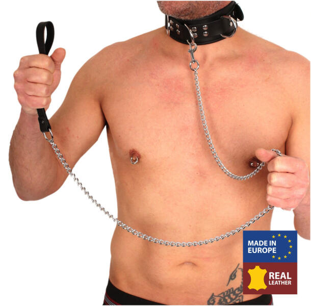 Fekete bőr kutyapórázTeljes lánchossz: 100cmMagas minőségű bőrNövényi cserzésű Made in Europe