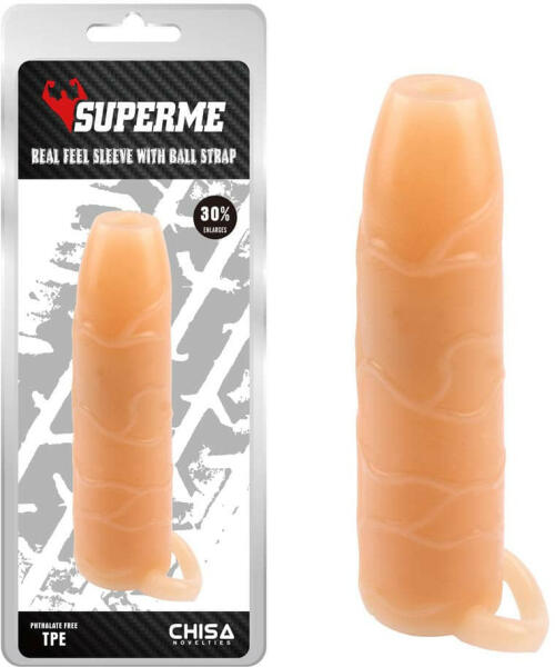 Termék részletekA pénisz vagy vibrátor egészét befedő, óvszerhez hasonló módon felhelyezhető erotikus kiegészítő. Külső kialakítása a partner számára izgató hatású. Anyaga vastagsága az ingerek érzékelését csökkenti, így teszi lehetővé az aktus idejének meghosszabbítását. Az állítható heveder segítségével fel is csatolható, akár 127 cm derékbőségig. Tisztítása : mind