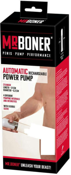 Beépített akkumulátorral rendelkező Mister Boner Automatic - péniszpumpa kellemes szívóhatással, egyszerűen, gombnyomásra, automatikusan! A péniszpumpa segítheti az erek tágulását, így az erekció elérését, valamint rendszeresen, kúraszerűen használva pénisznövekedés érhető el vele. Az eredmény könnyen nyomon követhető, a henger oldalán található méretskála seg