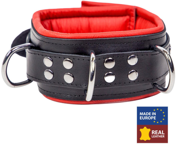 Ez a párnázott nyaklánc bőrből készült a The Red-től. Ideális az SM pillanatokhoz. Piros párnázott belsővel rendelkezik. A külső oldalon található 3 D-gyűrű lehetővé teszi a láncok vagy más SM kiegészítők rögzítését. Szélessége 6,5cm. Hossza 46cm állítható. Valódi marhabőrből készült