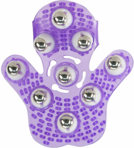 Roller Balls Massager - masszírozó kézfeltét (lila)Élvezd az otthon melegében a masszázs nyújtotta, csodásan ellazító, vad vágyra gerjesztő élményt, kevés erőfeszítéssel!Masszírozó golyókkal ellátott, kézre helyezhető, puha tüskékkel teletűzdelt masszírozó feltét, amivel könnyen fel tudod venni a masszírozott felület alakját, ezzel pontról pontra kényeztetve az