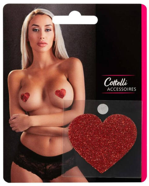 Csillogó piros bimbómatrica Tökéletes kiegészítő magán sztíp show-hoz! Két részes felragasztható(öntapadós) mellbimbódísz szett. Gyönyörűen csillogó, piros szívek, melyek diszkréten takarják a mellbimbókat. A díszek mérete: 5,2 x 4,9cm. Anyaga: 80% Papír, 15% PET, 5% ragasztó. 1pár a csomagban.