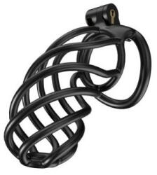 Fekete tisztasági ketrec csavart felülettel. Eredeti stílusú, 12,5 cm hosszú és 3,4 cm belső átmérőjű. 4 db 43, 46, 49 és 51 cm-es gyűrűvel. Zárral és kulcsokkal. Műanyag gyantából. Használati óvintézkedések:Használat előtt és után tisztítsa meg langyos, enyhén szappanos vízzelTartja a helyén a tisztaság gyakorlásának megfelelő ideig (az intim higiénia érdekéb