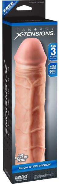 A Pipedream Fantasy X-Tensions - Mega 3' Extension TPE anyagból készült, pénisz vagy vibrátor egészét befedő, óvszerhez hasonló módon felhelyezhető erotikus kiegészítő. Külső kialakítása a partner számára izgató hatású. Anyaga vastagsága az ingerek érzékelését csökkenti, így teszi lehetővé az aktus idejének meghosszabbítását. Változtassa péniszét azonnali ö