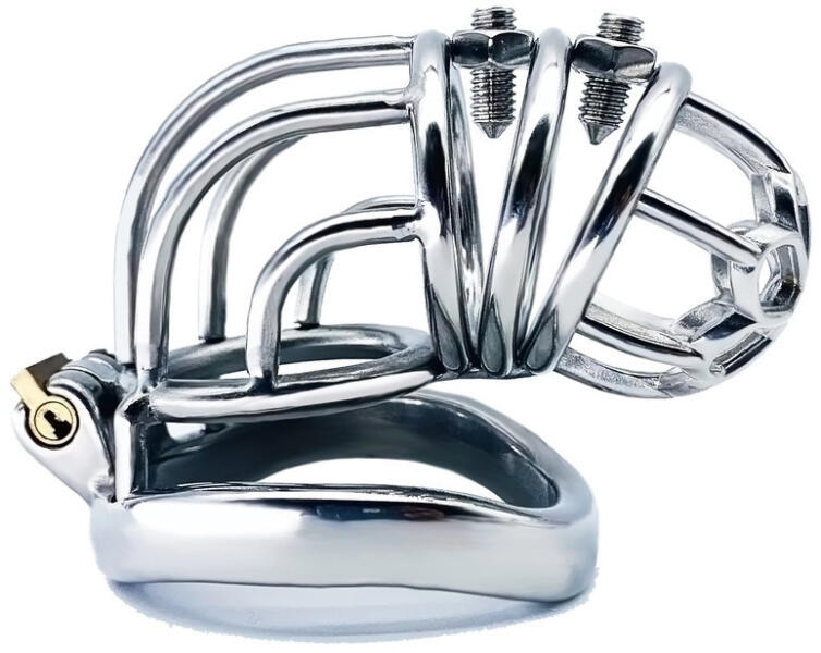 Pénisz ketrec erényöv. A lakat 2db. kulccsal tartozék. A heréhez kell csatlakoztatni (here gyűrűvel) majd lakattal fixálni. hossza:11cm, belső átmérő:3,3cm