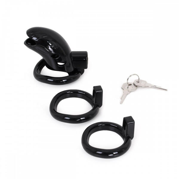 Merev, rövidke ketrecrésszel rendelkező péniszlakat, aminek elején és oldalán nyílásokat helyeztek el, a szellőzés és a "szükség" érdekében. A dobozban több bázisgyűrűt találunk, amik közül az ideális méretűt a herék mögé kell helyezni, erre kell majd felépíteni a zárószerkezetet, amit végül plombával, vagy a szintén tartozék, igencsak egyszerű lakattal zárh