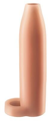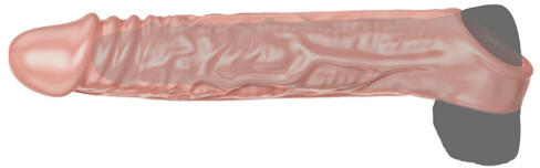 This sleeve creates extra thickness and length for extra sensation during sex. Simply pull the flexible sleeve over the scrotum where it will remain solidly in place providing extra support. This extension sleeve easily adds an extra 3.8 cm to the length of your penis. The sleeve is made of firm, yet flexible material, which feels realistic. The firm glans ensures the perfect stimulation for your