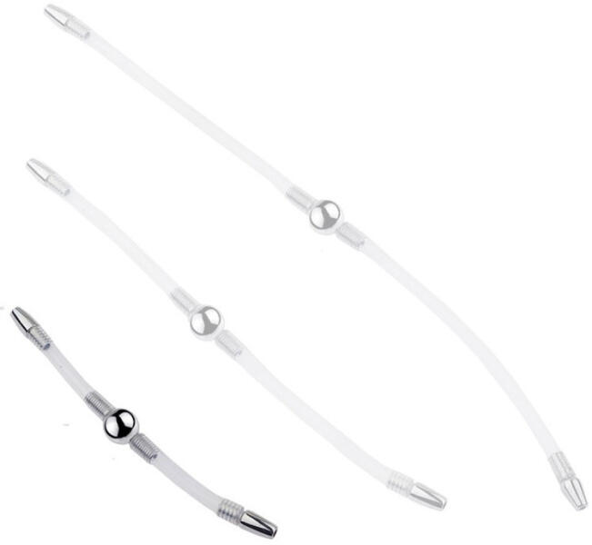 Ez a dupla húgycső rúd rugalmas, és lehetővé teszi, hogy ketten játsszanak. Két részből áll, amelyek 7 cm-en át illeszkednek. A fém részek átmérője 8mm, a műanyag csőé pedig 6mm. Fúrva van, és a két vége kommunikál, hogy a folyadékokat átengedje. Tippek a használathoz: Ha fájdalom, kellemetlen érzés vagy vérzés jelentkezik, hagyja abba a használatát és forduljon