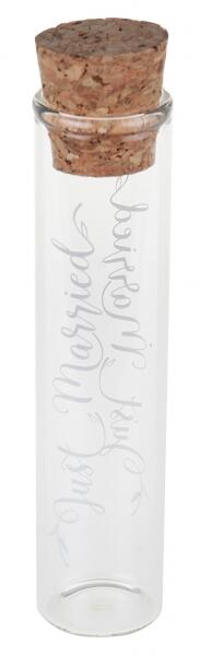 Üvegecske parafa dugóval Díszítsd az esküvői asztalokat ezekkel az üvegecskékkel, amelyek elengedhetetlen kellékek az asztali dekorációhoz . mennyiség : 1 db méret : 2,2 x 10 cm anyag : üveg