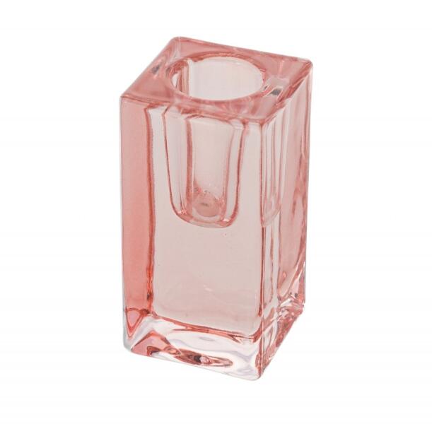 Gyertyatartó kónikus gyertyához tégla forma - Rózsaszín 4 x 4 x 8 cm Esküvőt vagy születésnapi partit tervez? Készítsen egy csodálatos parti díszítést ezzel az érdekes dekorációval, gyertyatartó formájában . mennyiség : 1 db méretek : 4 x 4 x 8 cm anyag: üveg