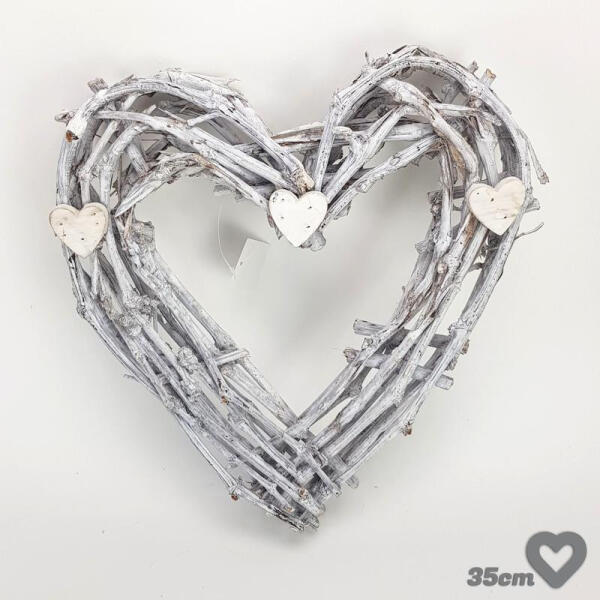 Vesszőágból készített szív formájú dekor alap. Stabil, masszív dekorációs elem, amit könnyen lehet díszíteni. Megjelenése egyedi hatást kölcsönöz minden kompozícióban. Méret: 34x35cm, szélesség: 6cm, vastagság: 60mm