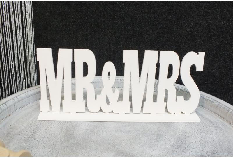 MR & MRS felirat. Esküvői dekoráció. A házasok asztalára, fotózási kellékként is. Méret: 25*10cm vastagság:3mm talp:25*4cm