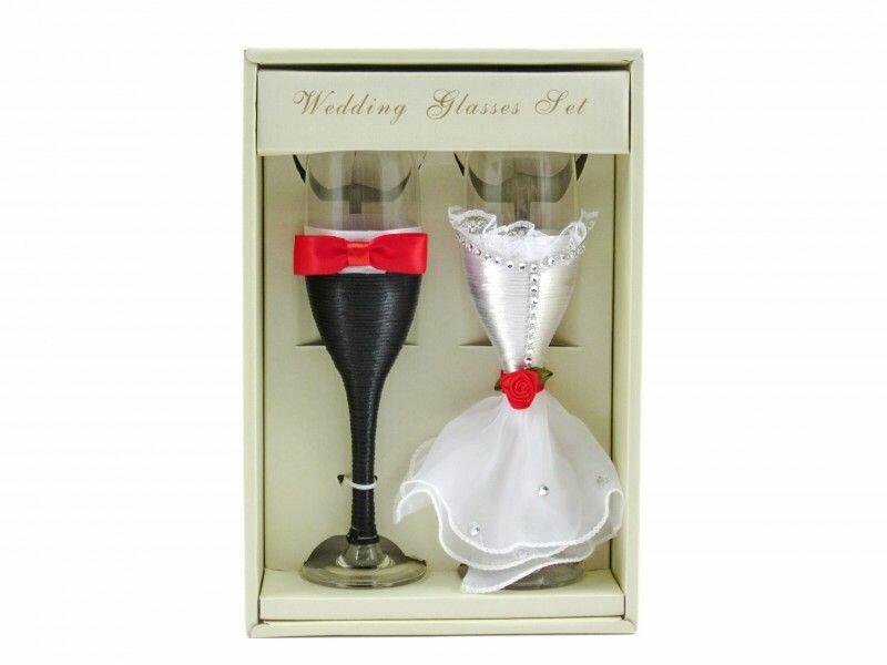 Esküvői pohár 2db fekete/fehér/piros 1131 - Esküvői kellékek Esküvői pohár 2db fekete/fehér/pirosBefoglaló méretek 18x9x28 cmAnyaga üveg