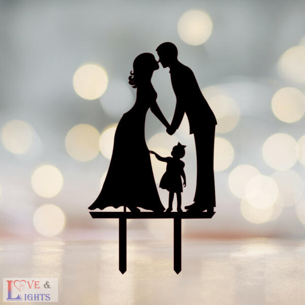 Pár gyermekkel mintás esküvői tortadísz Különböző anyagból készítünk tortadíszeket, így mindenki megtalálhatja azt, amelyik a legjobban passzol a dekorációhoz, elképzeléseihez. Az esküvő után is szép emlékek örzője lesz. A könnyebb tároláshoz készítünk tortadíszeinkhez talpat - kérés esetén. Így használat után letörhető a beszúró vége, és egy ellipszis