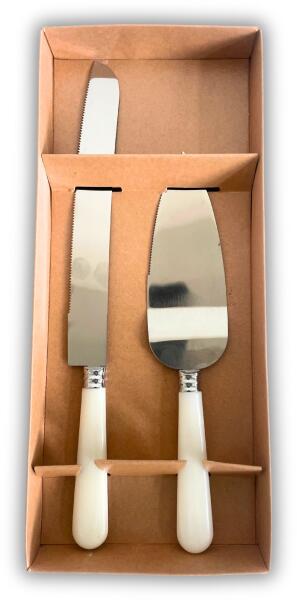 Tortakés és tortalapát mennyiség: 1 db méretek: kés 30,5 cm, lapát 24,5 cm A szépen díszített lapát és kés az esküvői torta adagolására alkalmas. A dekorációk elegáns benyomást tesznek ésbármilyen eküvői díszítéshez illenek.