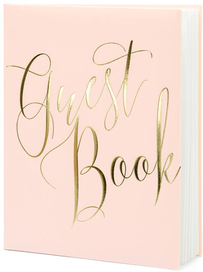 Vendégkönyv - Rózsaszín, arany felirattal mennyiség: 1 db méretek: 20 x 24,5 cm 22 oldalt tartalmaz szöveg nélkül Varázsolja el az esküvői vendégeket ezzel a gyönyörű vendégkönyvvel .