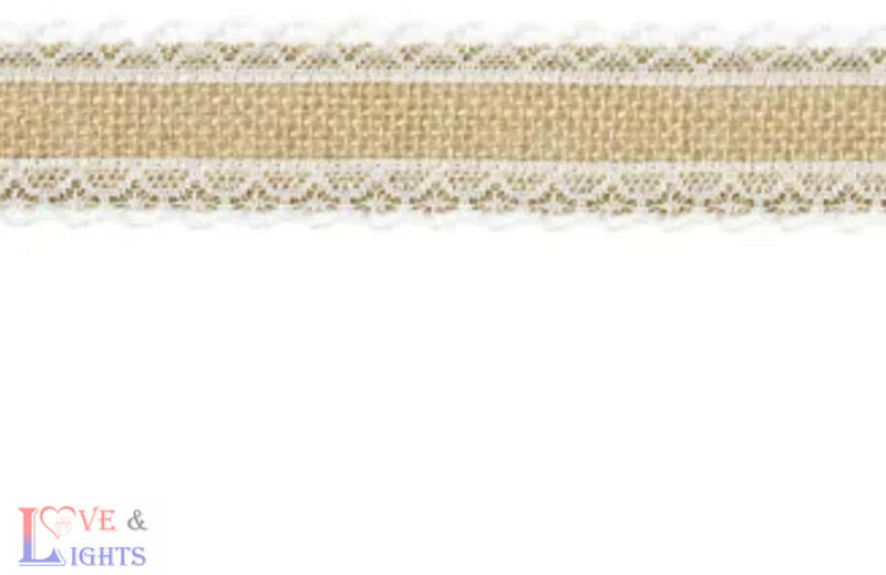 Juta szalag fehér csipke szegéllyel Jó választás vintage esküvői dekorációhoz Mérete: 4x500 cm