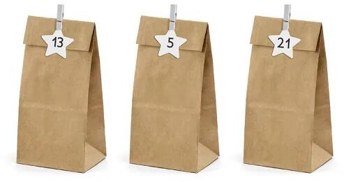 Papír tasakok - Adventi naptár A készlet 24 db papír tasakot, 1-24-es számmal ellátott matricákat tartalmaz, melyek segítségével elkészítheti saját eredeti adventi naptárát . A tasakba apró finomságokat, ajándékokat vagy édességeket tehet, és átadhatja családjának, barátainak vagy kollégáinak. tartalom: 24 x tasa, 24 x matrica, 24 x fa csipesz méret: 8 x 6,5 x 21 cm