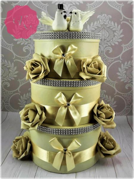 A termék jellemzői: Elegáns nászajándék gyűjtő doboz Galam bpár Krém színű doboz, strassz szalag, hozzáillő szatén szalag és habrózsa díszítés Aj