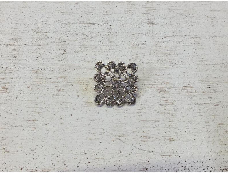 Fém strasszos dekorációs kellék. Alkalmazható exkluzív menyasszonnyi csokorba, koszorúk készítésénél, de ékszert is díszíthet vele. 17mm