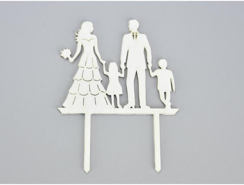 Esküvői tortadísz, nászpár és három gyermek alakkal Különböző anyagból készítünk tortadíszeket, így mindenki megtalálhatja azt, amelyik a legjobban passzol a dekorációhoz, elképzeléseihez. Az esküvő után is szép emlékek örzője lesz. A könnyebb tároláshoz készítünk tortadíszeinkhez talpat - kérés esetén. Így használat után letörhető a beszúró vége, és