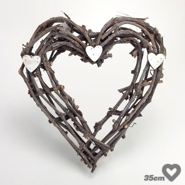 Vesszőágból készített szív formájú dekor alap. Stabil, masszív dekorációs elem, amit könnyen lehet díszíteni. Megjelenése egyedi hatást kölcsönöz minden kompozícióban. Méret: 34x35cm, szélesség: 6cm, vastagság: 60mm