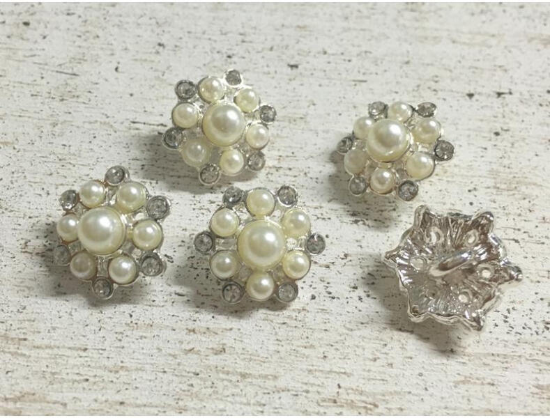 Fém strasszos, gyöngyös dekorációs kellék. Alkalmazható exkluzív menyasszonnyi csokorba, koszorúk készítésénél, de ékszert is díszíthet vele. 16mm